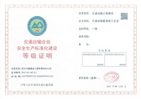公司被評為“交通運輸企業安全生產標準化建設一級“企業