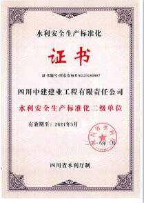 經四川省水利安全生產標準化評審委員會審定,我司被評為“水利安全生產標準化二級單位”。